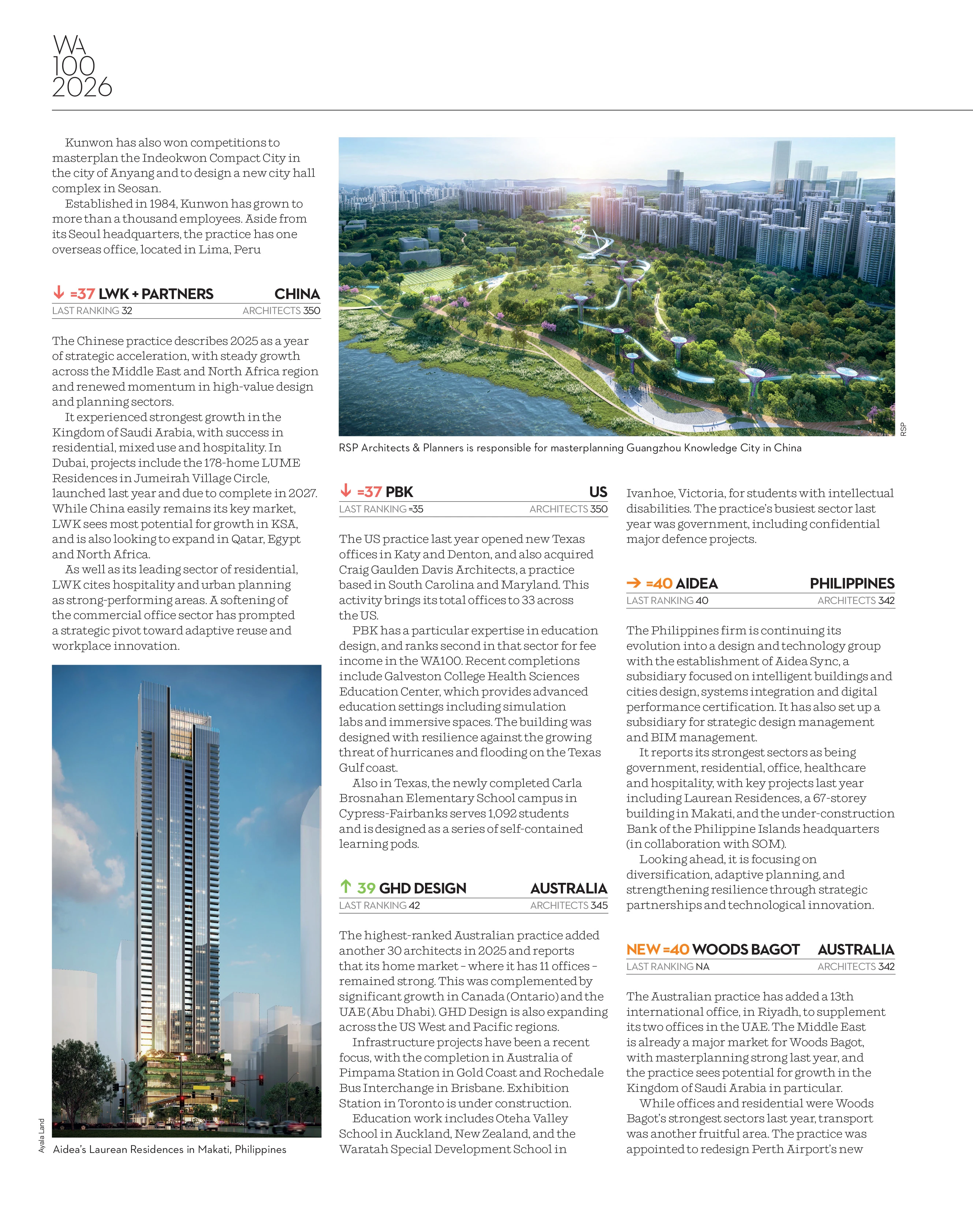 The World Architecture 100 (WA100) is Building Design’s annual ranking of the world’s largest architecture firms, measuring global reach, influence, and impact. It serves as a benchmark for practices shaping the future of the built environment through leadership, innovation, and collaboration.