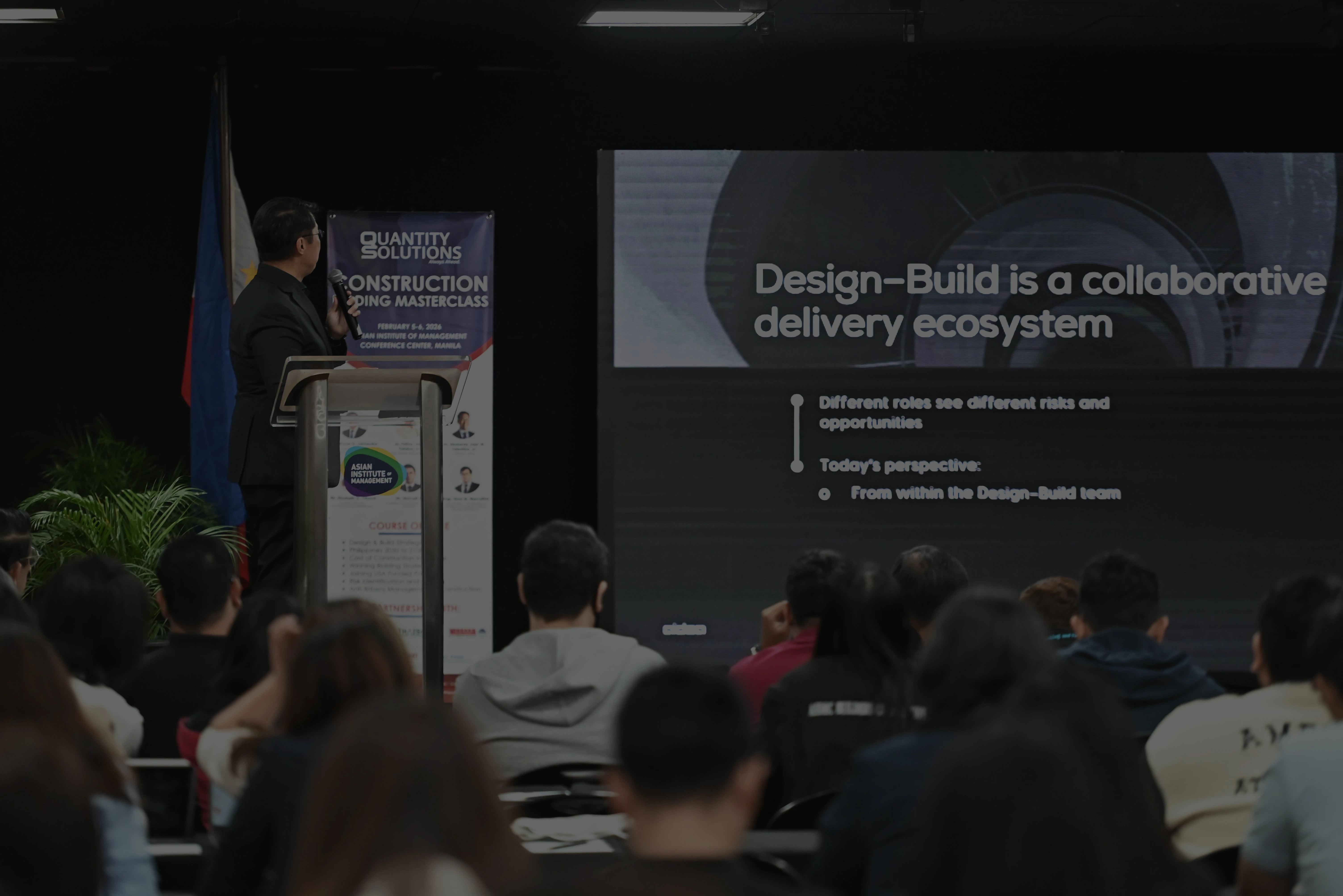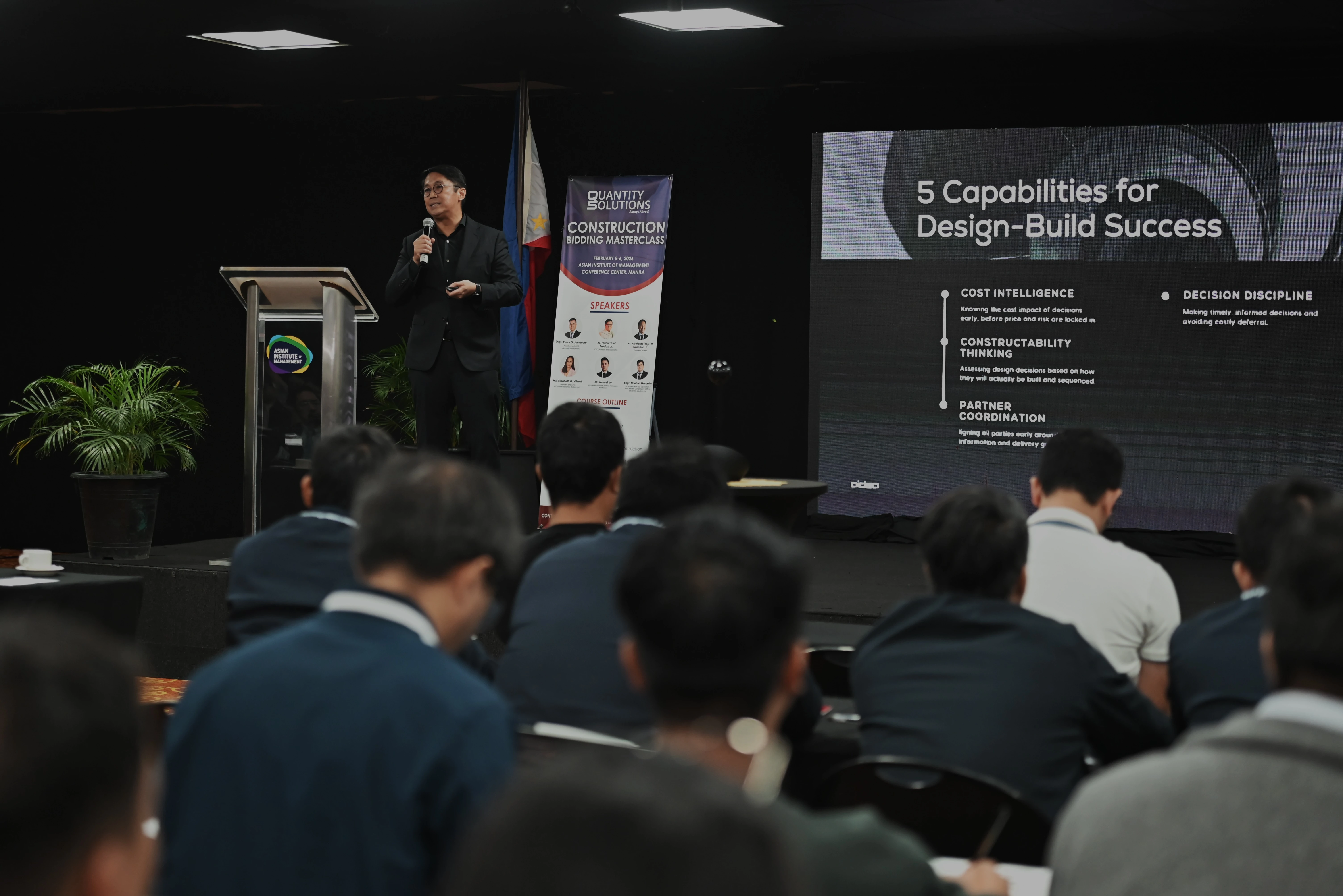 At the recent 2-Day Construction Bidding Masterclass by Quantity Solutions, Aidea’s President & CEO, Jojo Tolentino, challenged construction professionals to rethink how Design–Build success is defined.